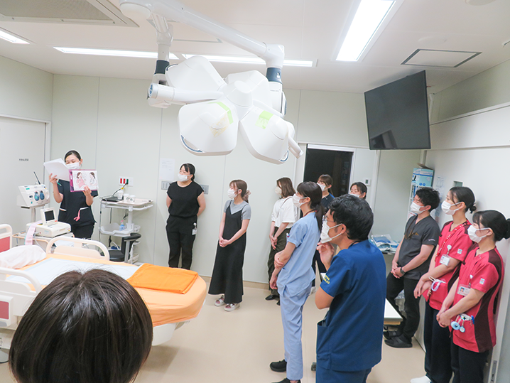 2025年7月22日無痛分娩時の危機対応シミュレーションとして、局所麻酔中毒の対応シミュレーションを行いました。 産婦人科医師20名、病棟助産師10名が参加し、2つのシナリオについて勉強しました。